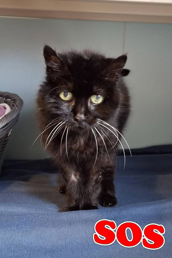 Voici Ebony : cette adorable chatte est née en 2011, c'est donc une "mamie" qui aimerait couler une retraite heureuse dans une famille très calme et attentionnée.