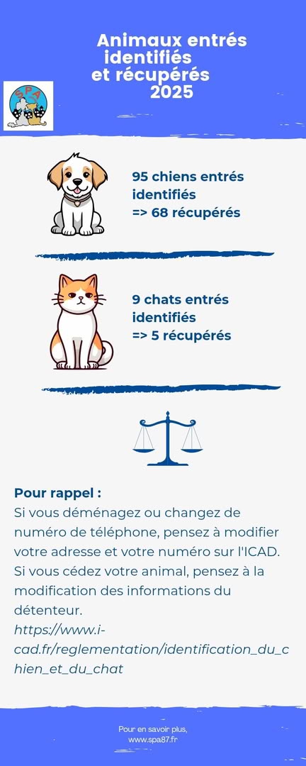 Il y a encore trop d’animaux non identifiés qui perdent ainsi une chance de retrouver leur propriétaire, trop de maltraitance, trop d’abandons dont certains non justifiés.