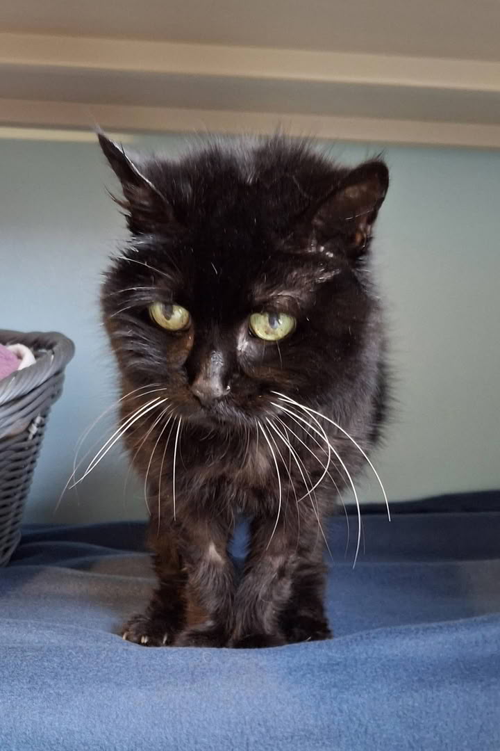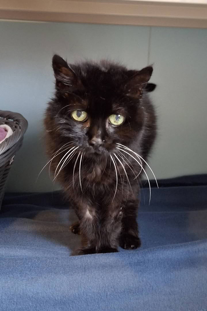Voici Ebony : cette adorable chatte est née en 2011, c'est donc une "mamie" qui aimerait couler une retraite heureuse dans une famille très calme et attentionnée.